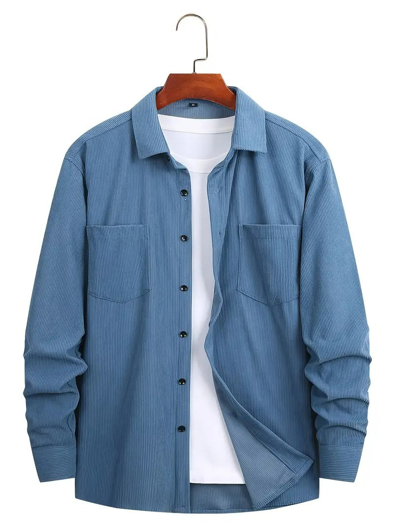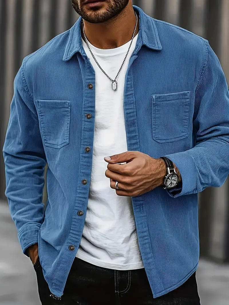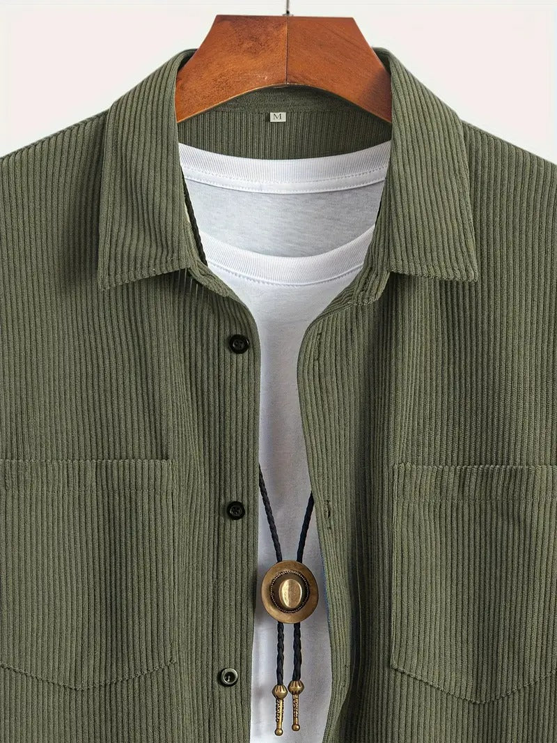 Men’s Corduroy Casual Jacket – Long Sleeve, Lapel Collar, Regular Fit