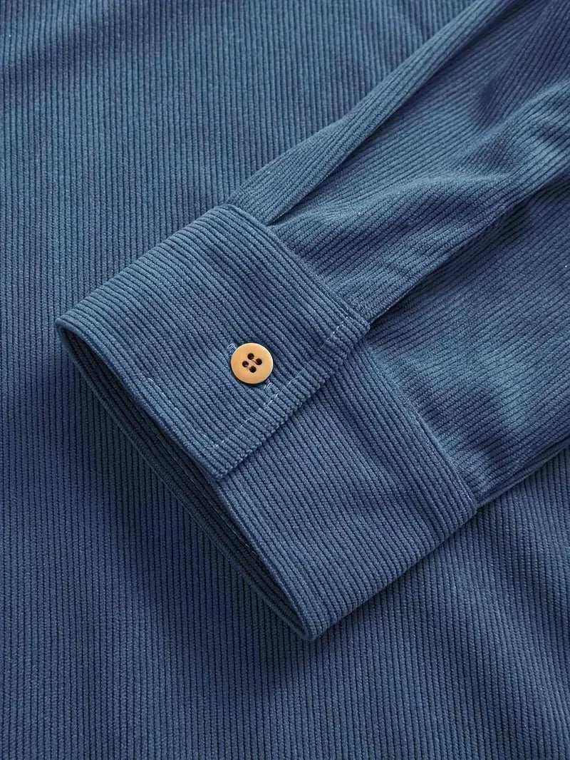 Men’s Corduroy Shirt – Casual Long Sleeve, Solid Colour, Regular Fit