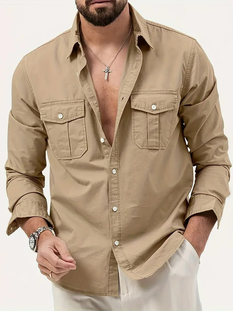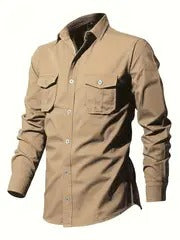 Men’s Plus Size Cargo Shirt – Long Sleeve, Multi-Pocket, Casual Wear