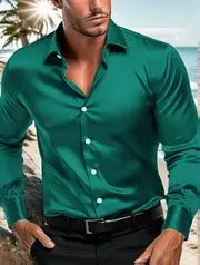 Featuring a classic lapel collar, regular fit silhouette, and single-breasted button closure, this shirt combines sophistication with comfort. Its non-stretch fabric maintains structure, making it an excellent choice for formal occasions, evening wear, and office outfits.
